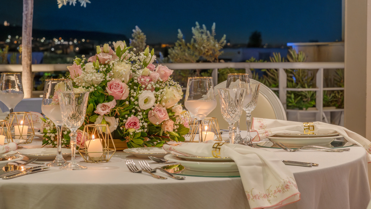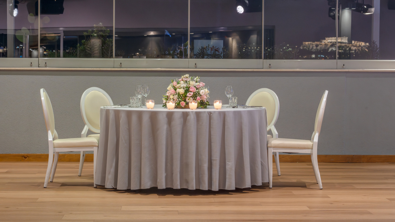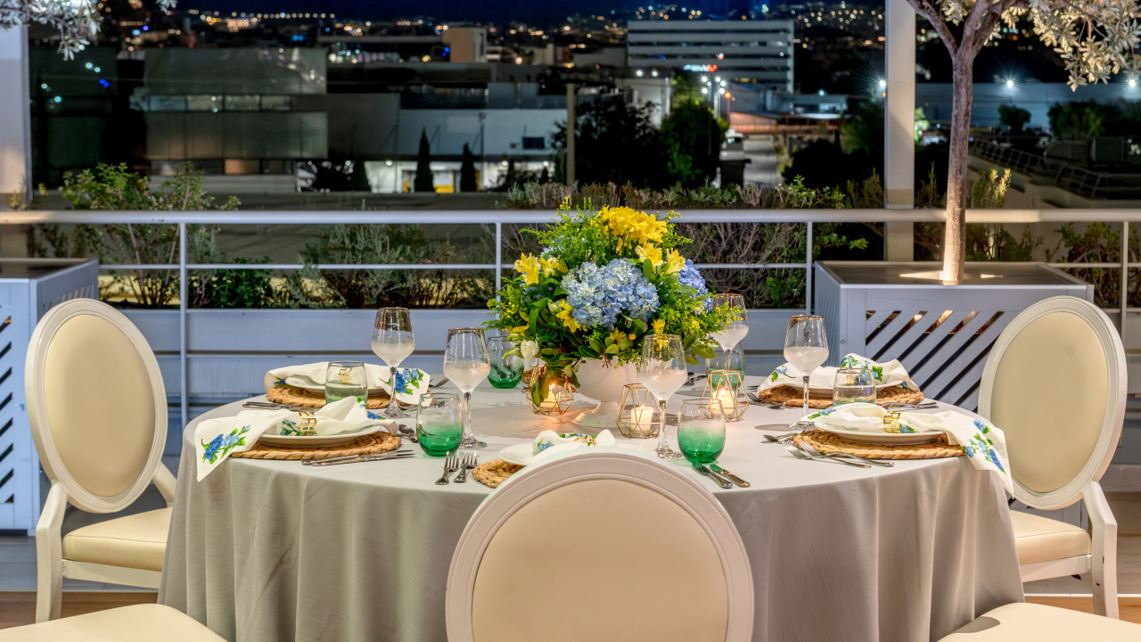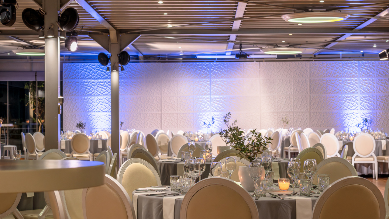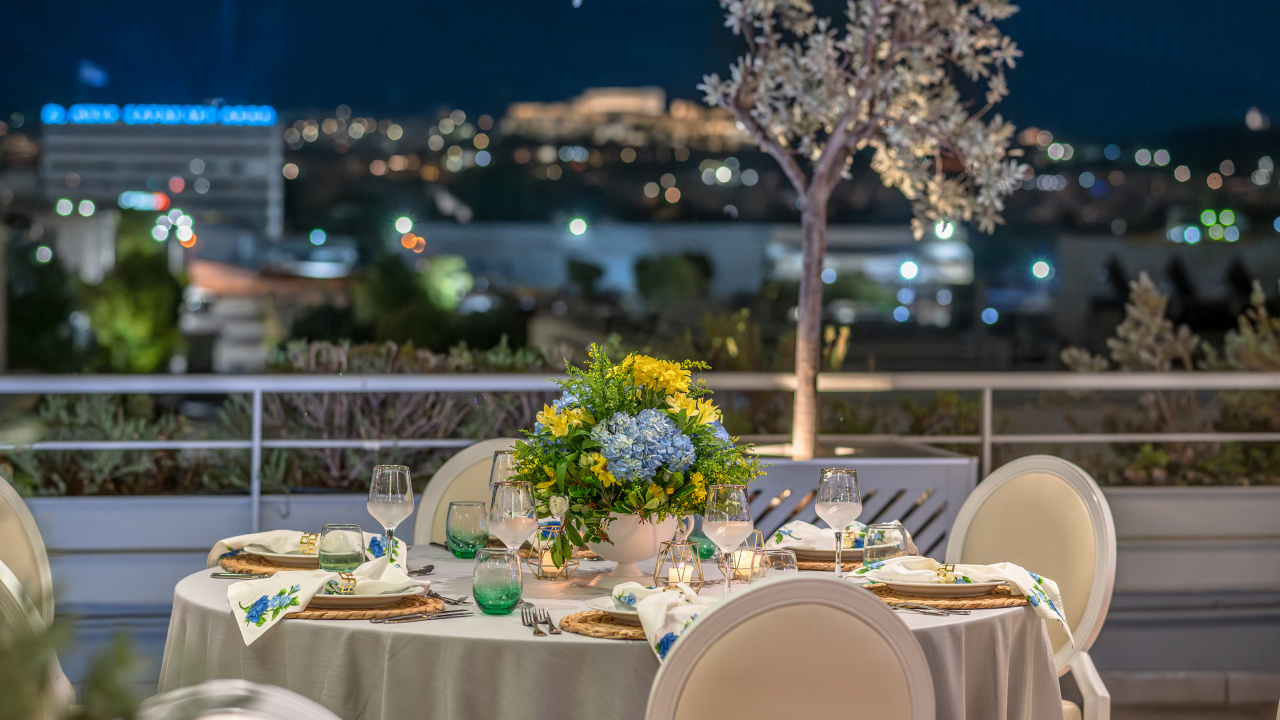 The unobstructed view to the Acropolis and the Lycabettus, generous premises, high aesthetics in its interior design, furnishings, tableware, linen, modern technological infrastructure, our selected partners in lighting, music and decoration and our workforce, welcoming, hospitable, with comprehensive training and experience, compose all the parameters that ensure the success of every event.